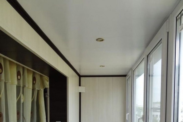 Для грамотно обустроенных утепленных лоджий мы можем рекомендовать натяжные потолки с любыми видами светильников. Кроме отделки поможем установить лианы для сушки белья, жалюзи и даже встроенную мебель.